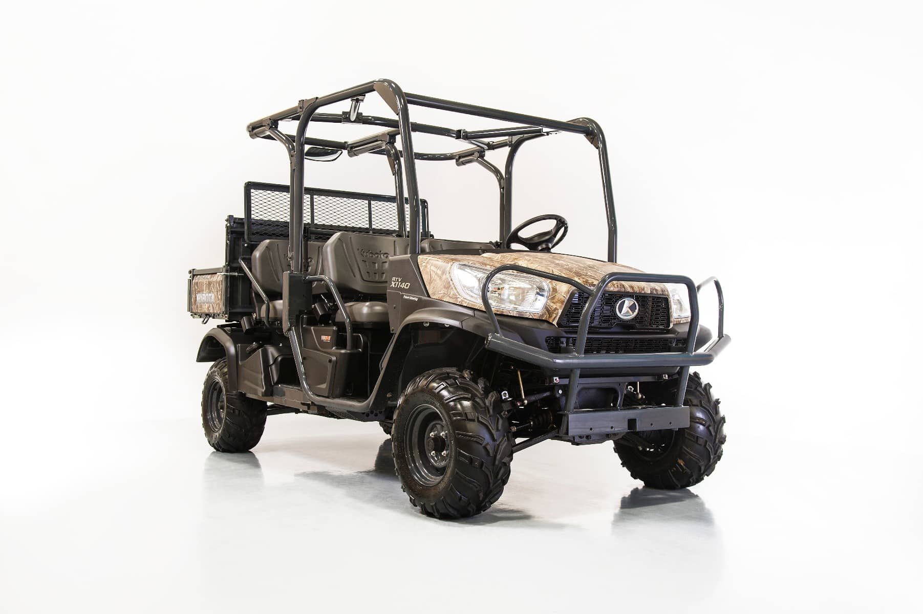 This 4 seat vehicle is packed with convenient features and powered by a proven 24.8 HP Kubota diesel engine. Available in Realtree AP camouflage and including ATV tyres (not EC Homologated).