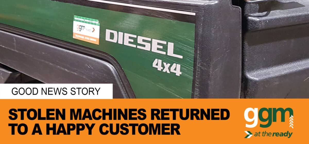The machines looked like they had been hotwired, which raised alarm bells so Kieran contacted GGM as our details were on the vehicles and also reported them to the Police. We responded instantly and our Commercial Director Andy Melville recalled selling two of the same Utility Vehicles to an NHS facility near Longridge a few years ago. One of the GGM team quickly paid a visit to the customer, informing them of the situation and it turns out the machines had been stolen a week or so prior and had been reported but never traced.